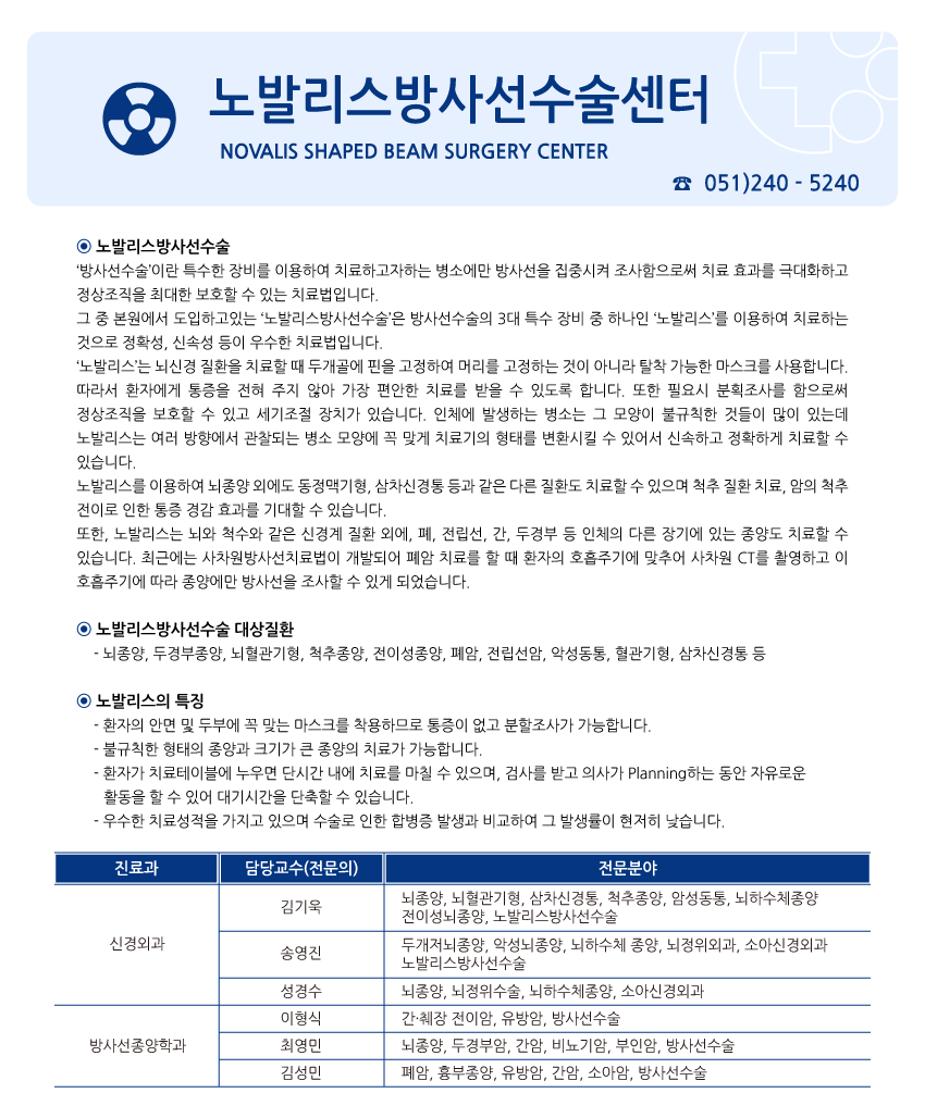 진료안내 전문진료센터 노발리스방사선수술센터