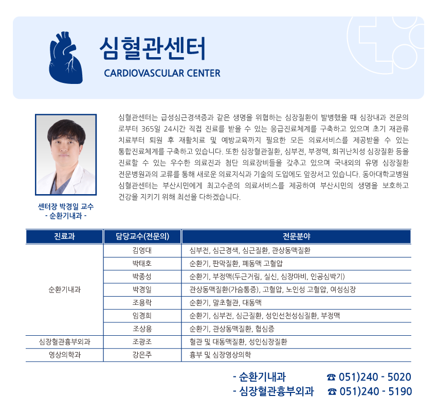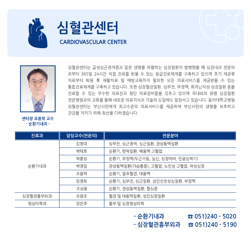 혈관 및 대동맥 질환, 성인심장질환 [문의]심혈관센터 (051)240-5190 |