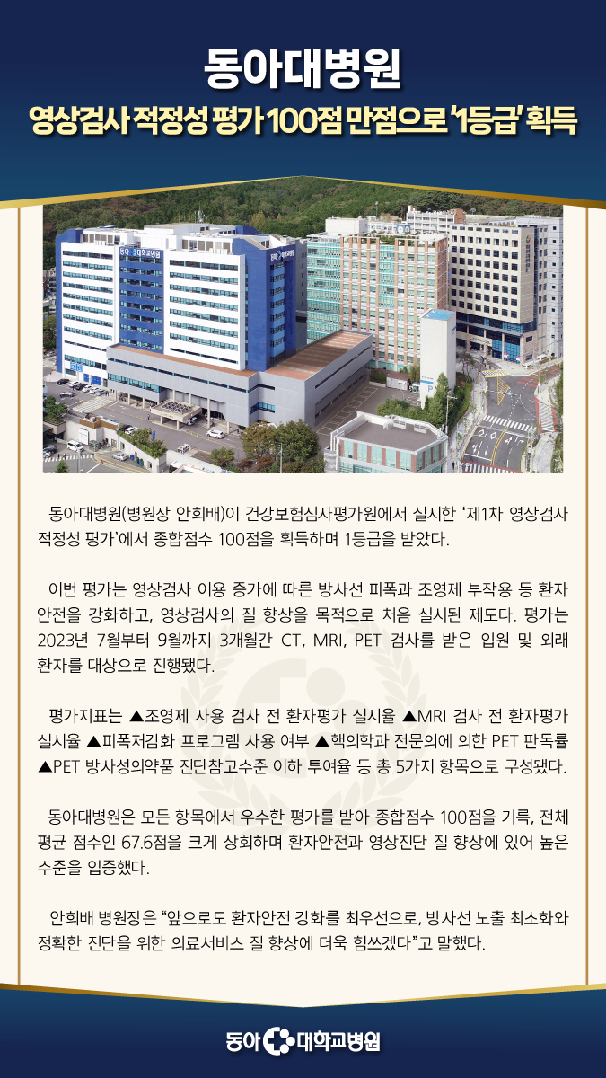 영상검사 적정성 평가 100점 만점으로 ‘1등급’ 획득