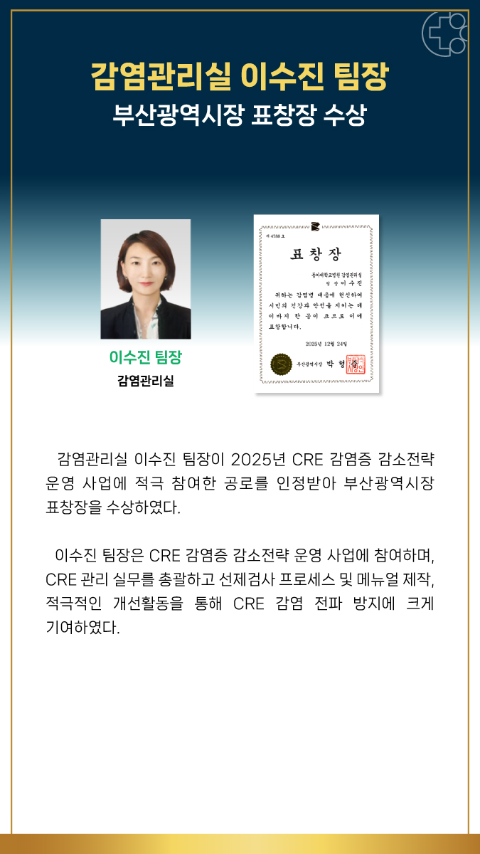 감염관리실 이수진 팀장 _부산광역시장 표창장 수상