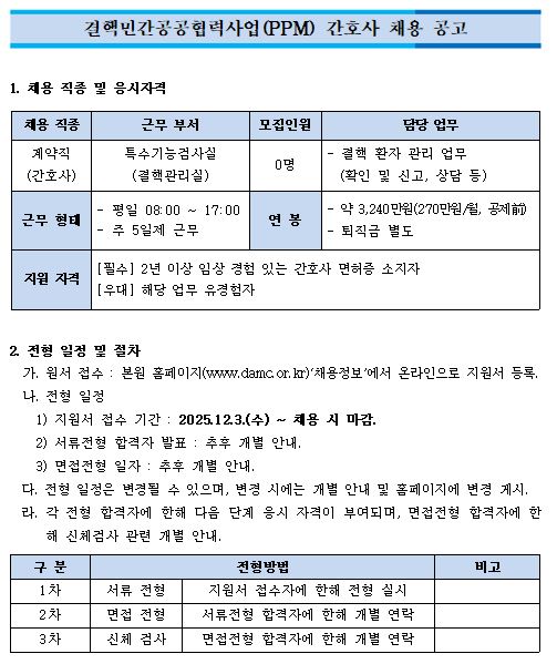 특수기능검사실(결핵관리실) 임시직 간호사 채용 공고