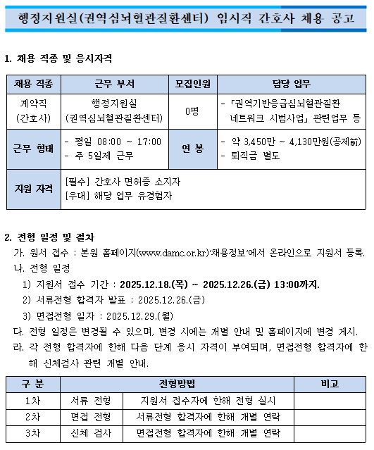 행정지원실(권역심뇌혈관질환센터) 임시직 간호사 채용 공고