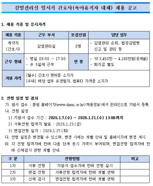 감염관리실 임시직 간호사 채용 공고