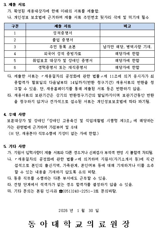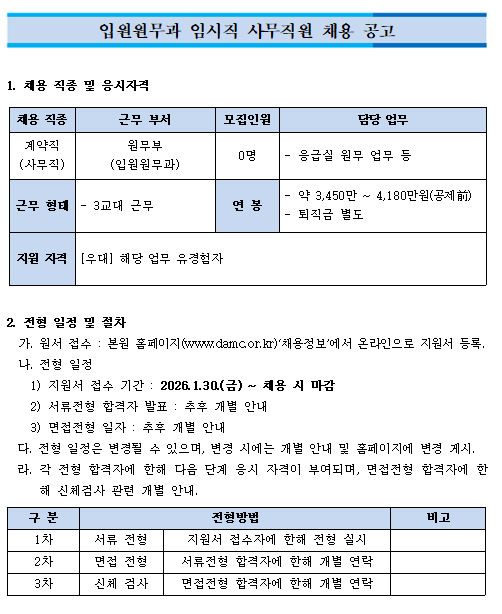 입원원무과 임시직 사무직원 채용 공고
