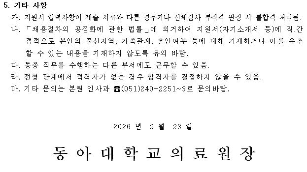 다음 특수기능검사실 임시직 사무직 직원 공개채용 공고