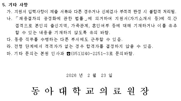 특수기능검사실 임시직 사무직 직원 공개채용 공고
