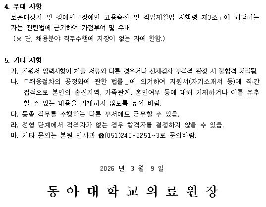 다음 2026년 동아대학교의료원 핵의학실 정규직 방사선사 공개채용 공고