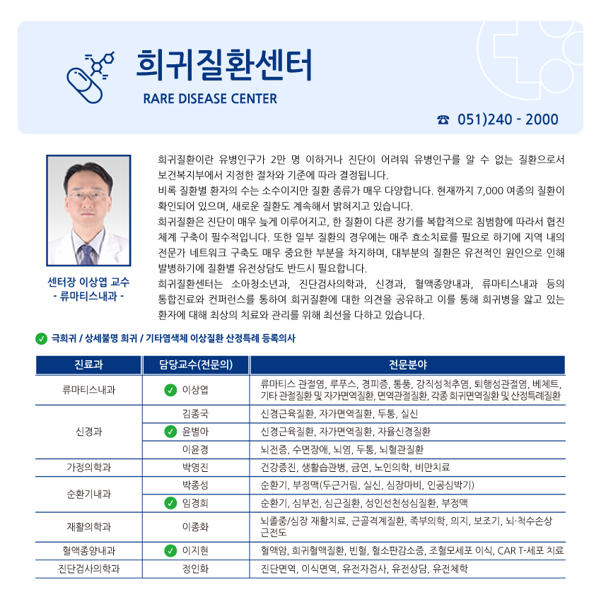 류마티스 관절염, 루푸스, 경피증, 통풍, 강직성척추염, 퇴행성관절염, 베체트, 기타 관절질환 및 자가면역질환, 면역관절질환, 각종 희귀면역질환 및 산정특례질환