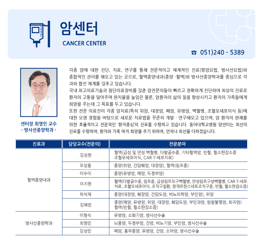 폐암, 흉부종양, 유방암, 간암, 소아암, 방사선수술 |