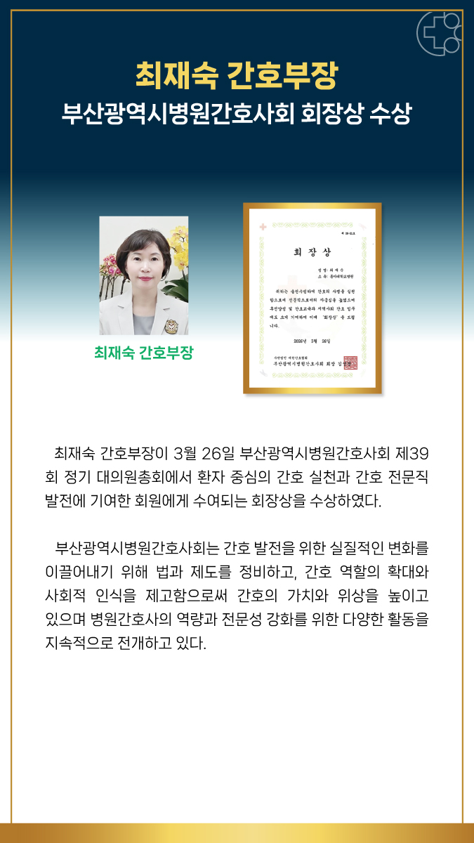 최재숙 간호부장 _부산광역시병원간호사회 회장상 수상
