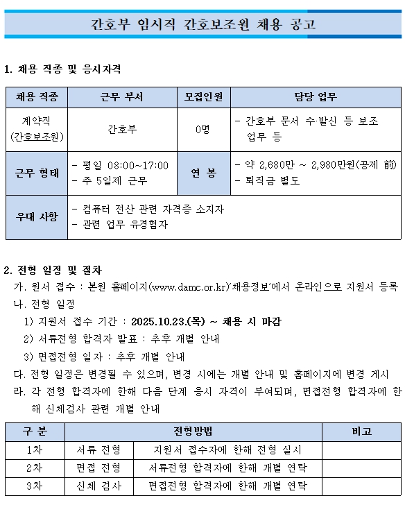 다음 병리실 임시직 보건의료정보관리사 채용 공고