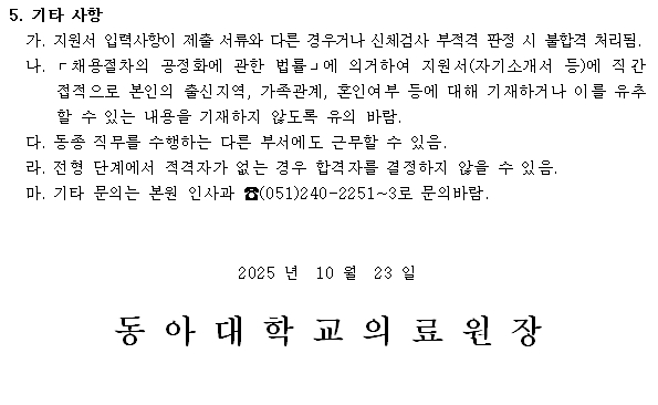 이전 2025년 동아대학교의료원 영상의학실 정규직 방사선사 공개채용 최종 합격자 발표