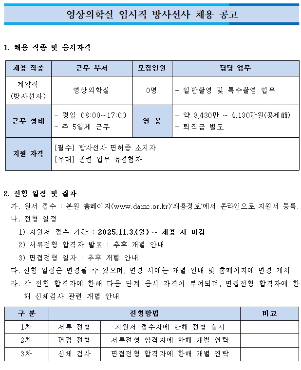 이전 감염관리실 임시직 간호사(육아휴직자 대체) 공개채용 공고