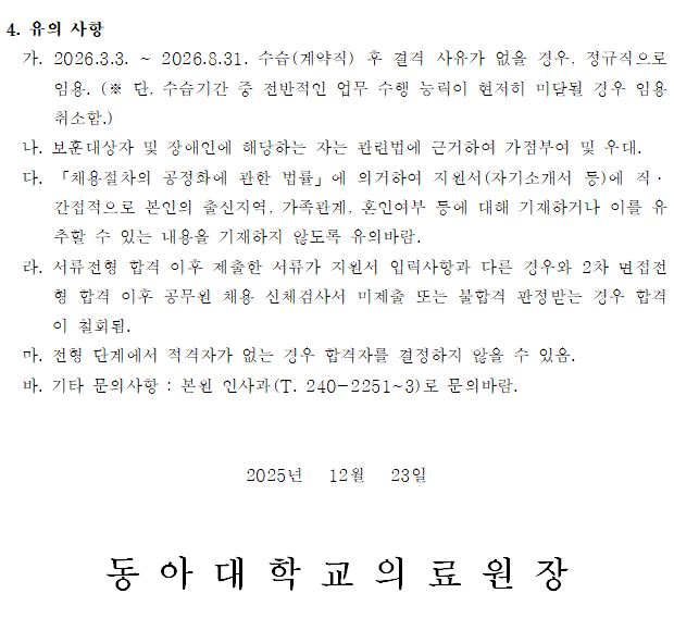 다음 2026년 동아대학교의료원 재활치료실 정규직 물리치료사 공개채용 공고