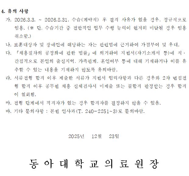 다음 2026년 동아대학교의료원 건강증진지원과 정규직 산업위생관리기사 공개채용 공고