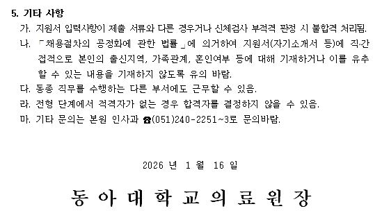 다음 2026년 동아대학교의료원 핵의학실 정규직 방사선사 공개채용 서류전형 합격자 발표