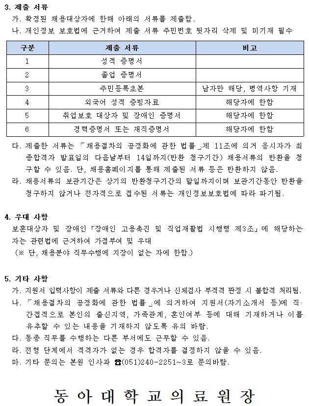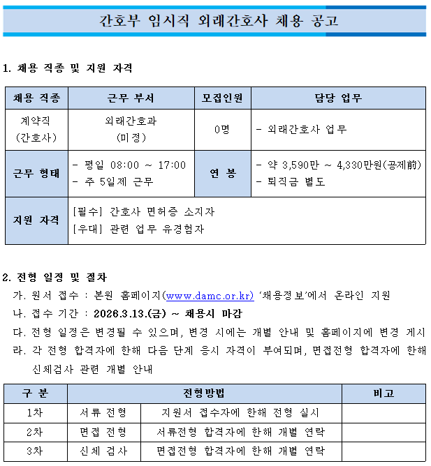 이전 영상의학실 임시직 방사선사 공개채용 공고
