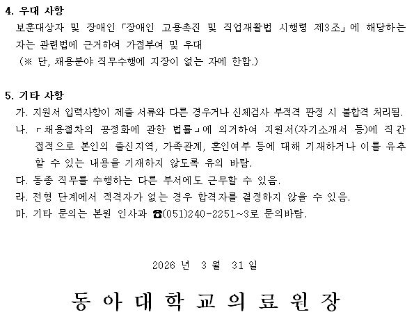 다음 2026년 동아대학교의료원 진단검사의학실 정규직 임상병리사 공개채용 공고