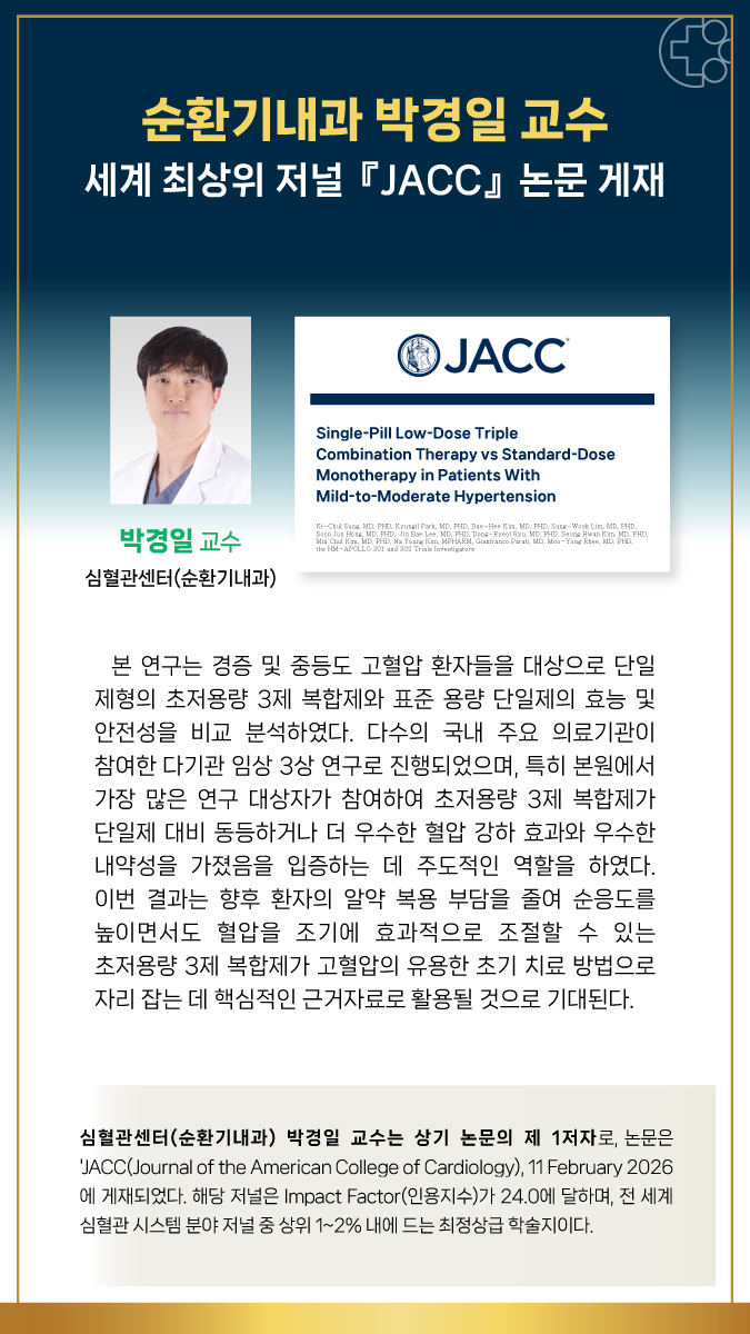 순환기내과 박경일 교수 _세계 최상위 저널『JACC』논문 게재